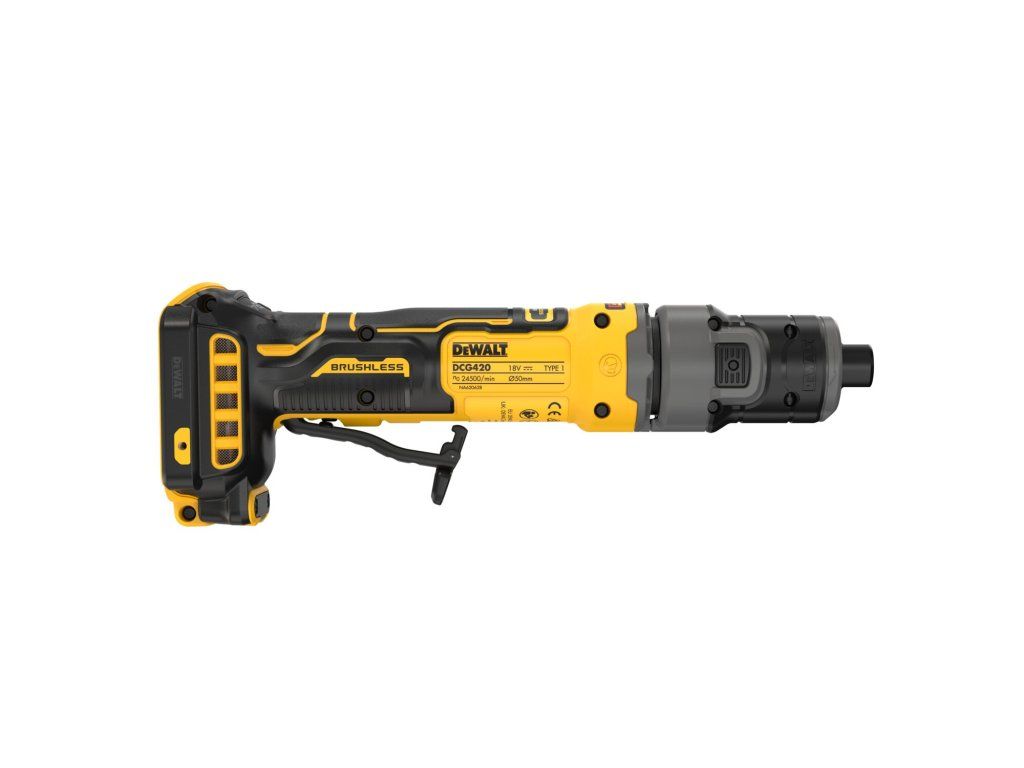 Akumulátorová přímá bruska DeWALT DCG420 je kompaktní a výkonný nástroj, který umožňuje přesnou práci v těsných prostorech.